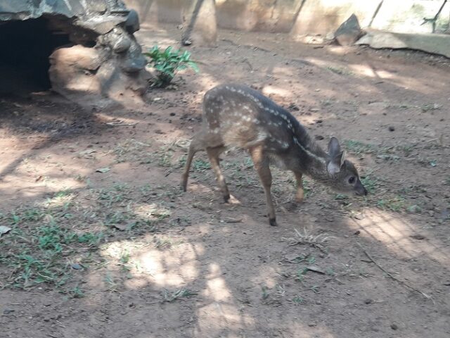 Trata-se de uma fêmea filhote de aproximadamente três meses. Ela foi encontrada sozinha numa rodovia da cidade de Jaboticabal com lacerações pela pele. A biólogo do zoológico comentou que o resgate do animal foi de extrema importância, visto que ele não teria condições de sobreviver sozinho. “Ela não sobrevive sozinha, pois deve ser amamentada por pelo menos 8 meses”, comentou. “E após meses sendo tratada em cativeiro, não é possível a reintrodução em vida livre”.