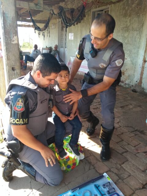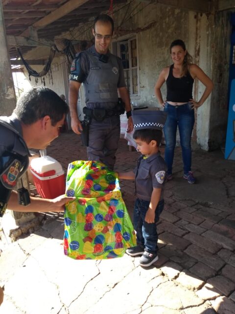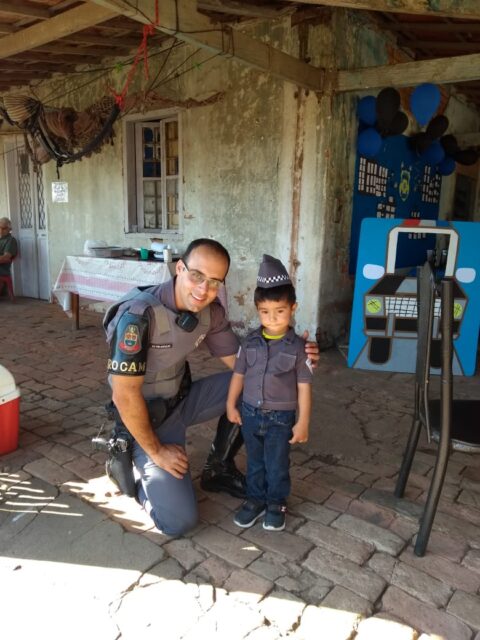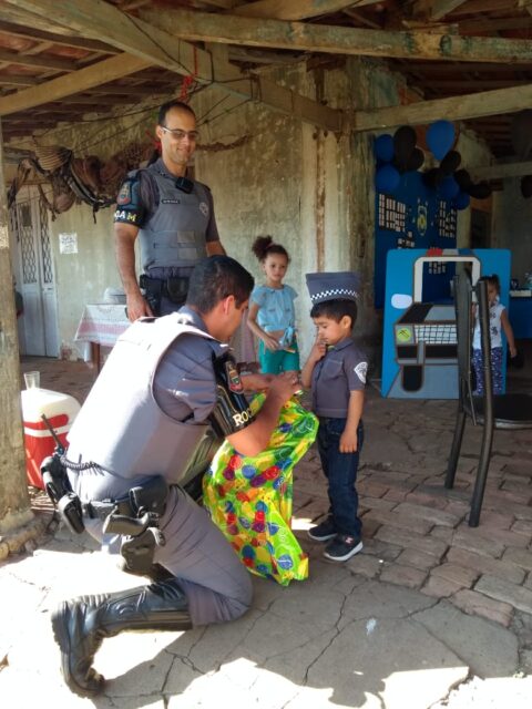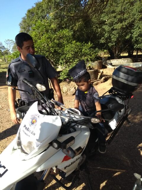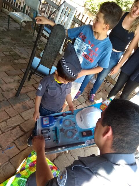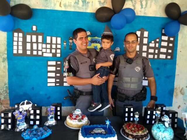 “Ele ficou muito feliz e surpreso”, respondeu o pai do pequeno Vinicius quando perguntamos a ele qual foi a reação do garoto ao ver os policiais. A festa aconteceu por volta das 14 horas daquele sábado.