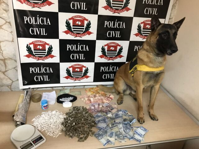 A DISE solicitou apoio do Canil da Polícia Militar, e, posteriormente, o cão farejador encontrou ainda mais uma sacola cheia de entorpecentes escondida sob o lixo da cozinha.
