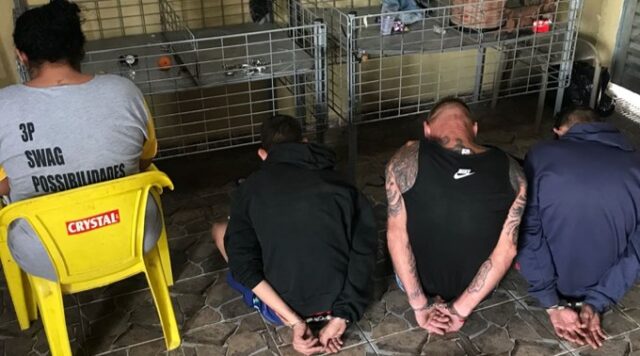 Quatro indivíduos foram detidos: o tal “Alemão”, de 56 anos (que já possuía passagem por tráfico de drogas) e um sujeito de 24 anos (que também já possuía passagem por estelionato). Um indivíduo de 28 anos e uma mulher de 30, também detidos, não possuíam passagem.