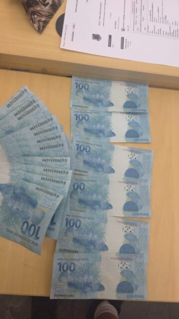 Assim que o Grupamento Ciclístico chegou ao local, flagrou a mulher detida na rua por populares. Pessoas na loja a detiveram no momento em que ela tentou comprar um relógio com o dinheiro falso. Quando questionada, ela disse não saber que as notas eram falsas. Na sua carteira, os policiais ainda encontraram mais R$ 1,700 reais em dinheiro falso. Ela acabou confessando, no decorrer da ocorrência, que as notas falsas provinham de sua cunhada.