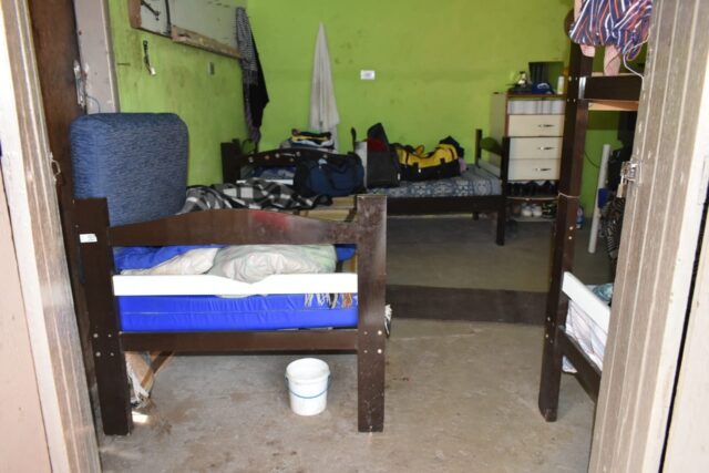 O que chama a atenção na casa são as condições insalubres do local. Um quarto com três camas e uma beliche funcionava no cômodo onde deveria ser a cozinha; no banheiro, o vaso sanitário foi retirado e uma cozinha foi montada. O banheiro não possuía canalização e todo o esgoto corria a céu aberto.