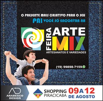 O Shopping Piracicaba recebe a partir desta quinta-feira (9), a Feira Arte Mix. A edição começa hoje e vai até o domingo (12). Será composta por interessantes objetos de decoração, moda, pet, serviços, literatura e entre outras representações artesanais. Os participantes poderão realizar ainda workshops gratuitos com nomes importantes do segmento.