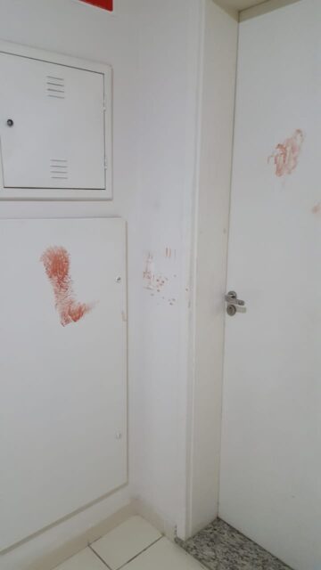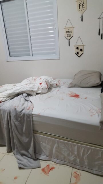 O Boletim de Ocorrência conta que, em seguida, tanto o porteiro quanto o síndico foram procurados pela condômina M.B, moradora do bloco B. Ela tinha o corpo repleto de ferimentos e disse que estava em seu apartamento, quando, por razões ainda desconhecidas, seu namorado de 26 anos tratou de desferir várias facadas nela. Em seguida, ele se jogou da sacada.