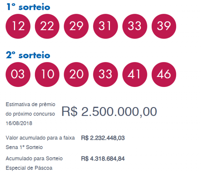 Os números da Dupla Sena são: