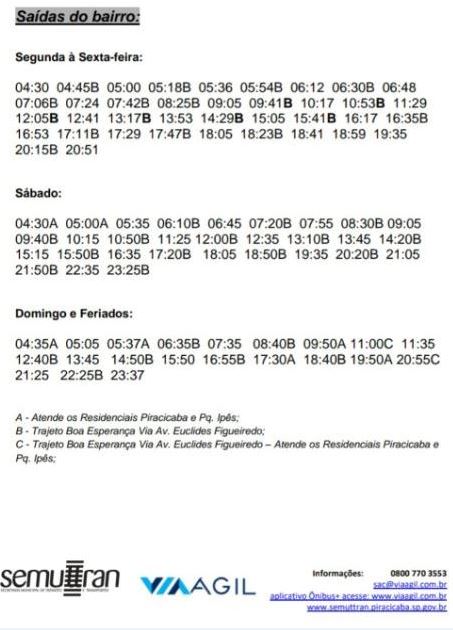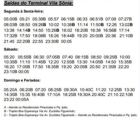 A medida trará melhorias para os moradores da região a partir deste domingo (26), como segue a tabela abaixo: