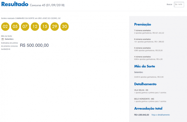 Resultado Dia de Sorte 45: prêmio acumulado em R$ 1 milhão
