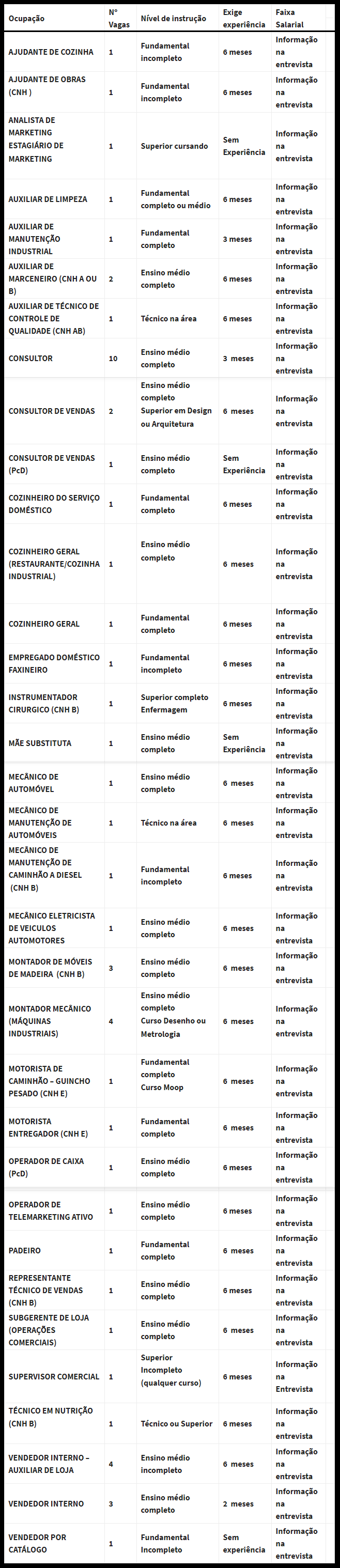 A cidade de Rio Claro (SP) — a 30 minutos de Piracicaba — abriu 34 novas vagas de emprego nesta quinta-feira (06). São vagas voltadas às mais diferentes profissões e segmentos; sem dúvida, uma oportunidade imperdível para quem está desempregado e busca por uma recolocação no mercado de trabalho.