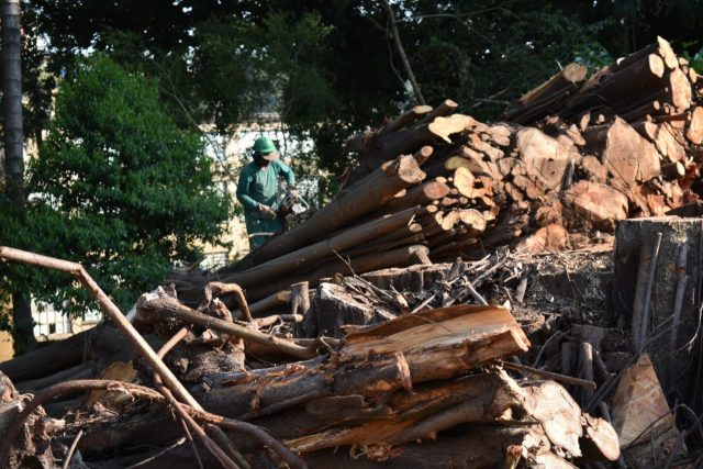 Árvores da Boyes são cortadas por completo na manhã desta quarta, em Piracicaba