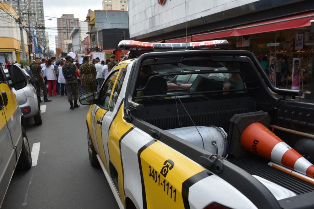 A caminhada pelo Centro de Piracicaba nesta manhã de sexta-feira teve apoio também da Semuttran (Secretaria Municipal de Trânsito e Transporte), que auxiliou na organização do trânsito.