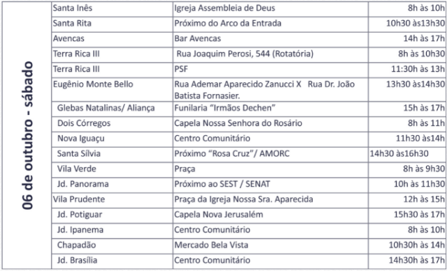 Confira na tabela os postos de vacinação do 2º sábado da campanha (06/10):