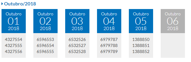 Sequências sorteadas no mês de outubro até o momento: