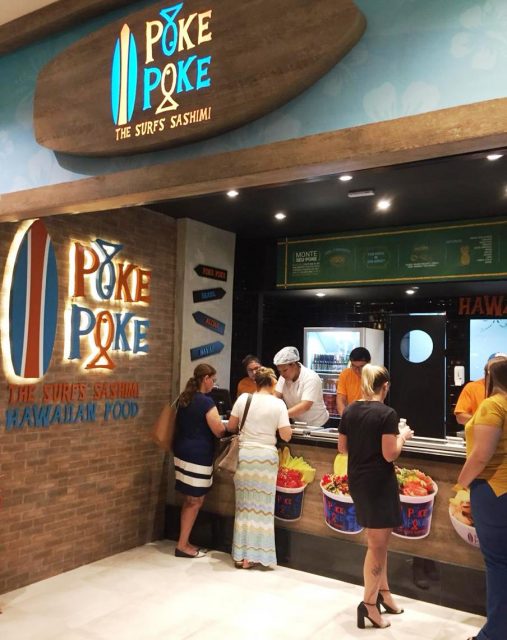 O poke, prato típico do Havaí, mistura cubos de peixe cru, arroz, frutas e outros adicionais, servidos no prato ou em um charmoso potinho de plástico ou porcelana, fácil de segurar e prático para comer andando. Essas características fazem do restaurante um fast food de comida saudável.