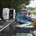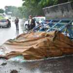 “Pode ser que tenha havido uma aquaplanagem”, comentou Luis Gustavo Gentile, sargento do Corpo de Bombeiros. “O caminhão veio tombando por aproximadamente 50 metros e aí parou no acostamento.”