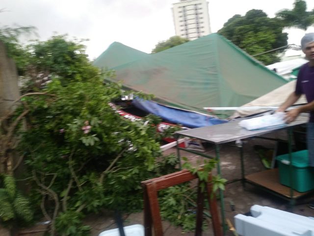 Na Paulista, algumas barracas de uma feira desabaram. Uma pessoa que estava em baixo ficou ferida e foi socorrida para a UPA do bairro Piracicamirim.