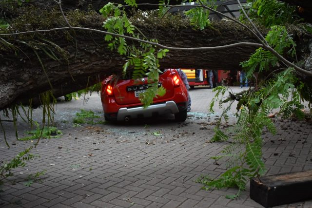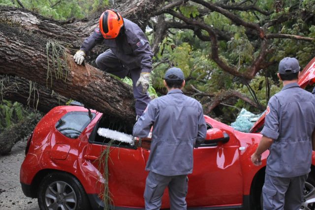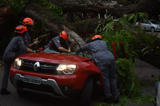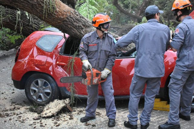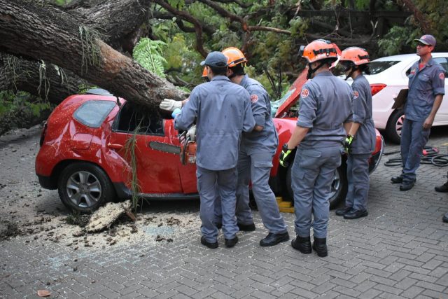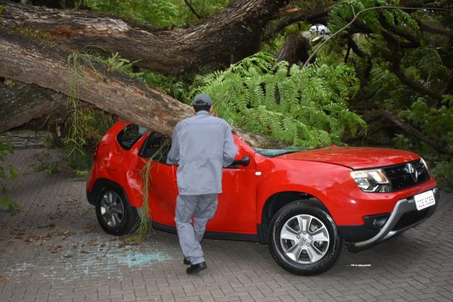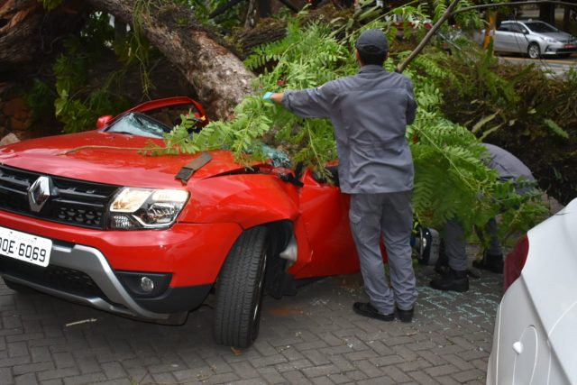 Uma árvore caiu sobre um carro no estacionamento de um hotel desta via. Um homem que estava dentro morreu, conforme informamos anteriormente.