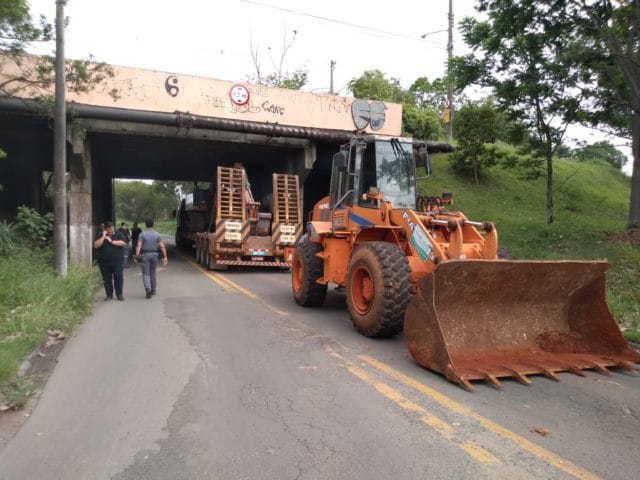 Um caminhão que transportava uma retroescavadeira danificou um viaduto na manhã desta quarta-feira (21), em Piracicaba (SP). O acidente ocorreu por volta das 08h50, no cruzamento da Avenida Comendador Luciano Guidotti com a Estrada Francisco Luiz Rasera, no bairro Água Branca.