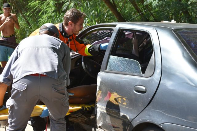 A Unidade de Resgate foi acionada para remover a vítima do interior do veículo. O jovem sofreu escoriações na cabeça e foi encaminhado à UPA do Piracicamirim. O passageiro saiu sem ferimentos.
