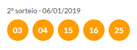 Os número sorteados no 2º sorteio da Tele Sena de Ano Novo foram: 03, 04, 15, 16 e 25