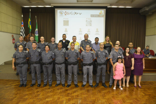 Policiais militares do 10º BPM/I (Batalhão da Polícia Militar do Interior) foram homenageados na manhã desta quarta-feira (16), por meio de uma solenidade que ocorreu às 10 horas, na Câmara de Vereadores do município. Os vereadores André Bandeira (PSDB) e Coronel Adriana (PPS) participaram da cerimônia, entregando Moção de Aplausos e Voto de Congratulações.