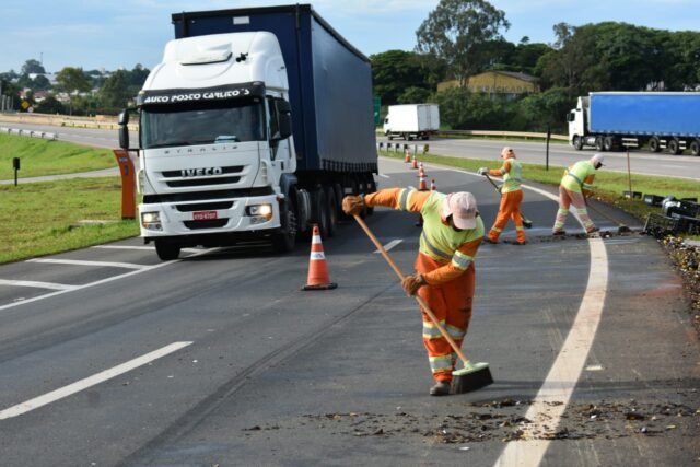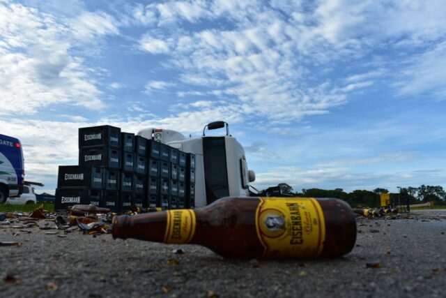 As 26 toneladas de cerveja ficaram espalhadas por toda a rodovia, interditando uma faixa de cada sentido. A Polícia Rodoviária foi acionada e está no local sinalizando o trânsito até toda a carga ser retirada. O fluxo de carros está moderado e não há congestionamento no trecho.