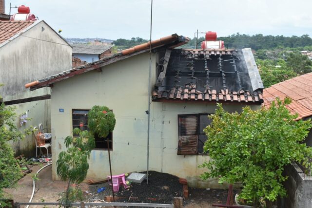 A Defesa Civil também teve que ser acionada, visto que as chamas danificaram as estruturas da residência. Parte do telhado também desabou.