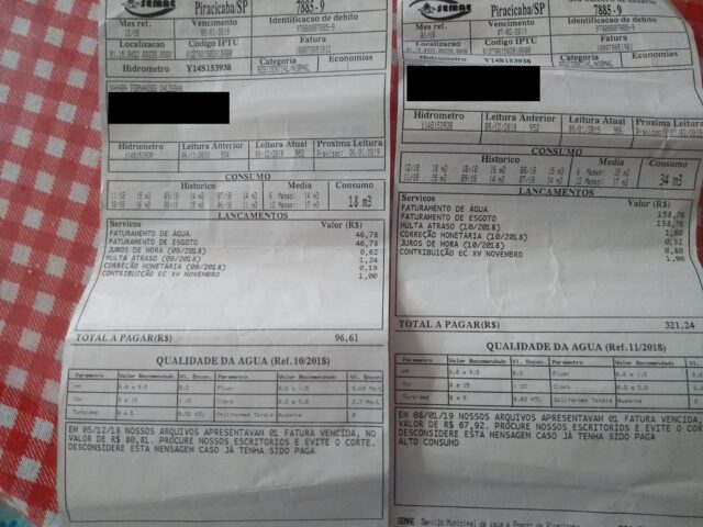 Outra reclamação foi feita pela moradora do bairro Jardim Nova Suíça, Nahara Calderan. Ela diz que quer entender a diferença dos valores, sendo que a conta referente ao mês de dezembro de 2018 fechou em um total de R$ 96,61. Já a conta referente a janeiro de 2019, totalizou R$ 321,24. Nahara afirma ainda que a água acaba todos os dias e que ela toma medidas para evitar o desperdício e, consequentemente, valores abusivos na conta de água.