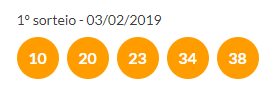 Os número sorteados no 1º sorteio da Tele Sena de Carnaval foram: 10, 20, 23, 34 e 38.