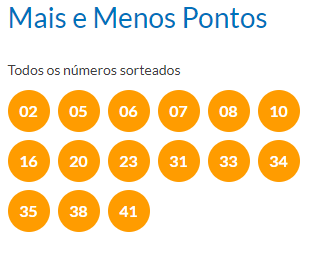 Todos os números sorteados até o momento no Mais e Menos Pontos: