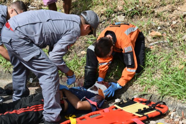 De acordo com socorristas da Unidade de Resgate do Corpo de Bombeiros e do GRAU (Grupo de Atendimento e Resgate às Urgências), a vítima sofreu três ferimentos corto-contuso (FCC) no rosto, uma fratura no nariz e ferimentos também nos pés. Ele recebeu primeiros socorros ainda no local e, posteriormente, acabou encaminhado ao Pronto Socorro (PS) Vila Cristina.