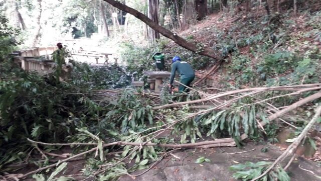 A manutenção realizada no Parque do Mirante ocorre em função do aumento da demanda causada pelos temporais, dificultando o deslocamento de uma equipe maior para trabalhar por dias em um único local, o que poderia prejudicar o atendimento da cidade como um todo.