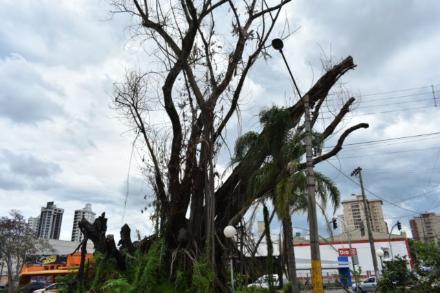 A seringueira localizada na esquina da Avenida Armando de Salles Oliveira com a Rua Floriano Peixoto, na área central de Piracicaba, foi cortada na manhã desta sexta-feira (22). Equipes da Defesa Civil e CPFL compareceram ao local nesta manhã para efetuar a tarefa.
