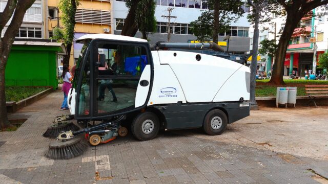 Após o corte, toda a vegetação (folhagens, galhos e arbustos) é triturada para posteriormente ser utilizada como matéria prima na produção de compostagem empregada como adubo no Viveiro Municipal. Paralelamente, uma máquina, comandada por um servidor, realiza a varrição automatizada da praça, assegurando assim o livre fluxo de pedestres instantes após a remoção dos galhos.