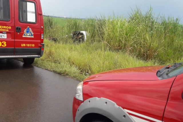 Veículo aquaplana em rodovia, invade pista contrária e capota na tarde desta quinta-feira (07)