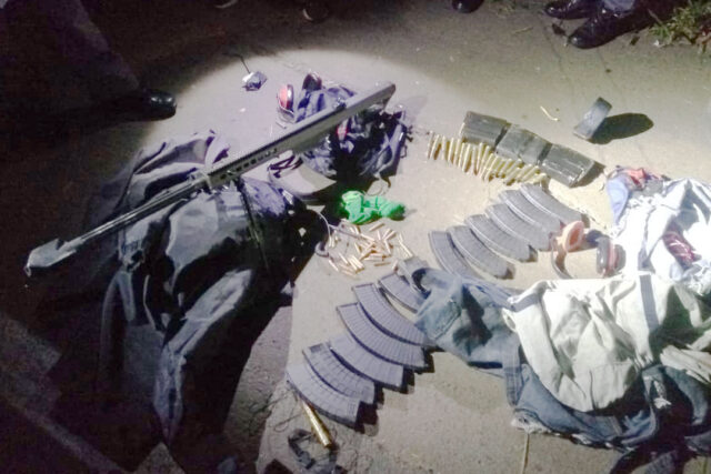 No local miguelitos (pregos retorcidos) e munições estão espalhadas pela rodovia. A primeira informação é que o carro-forte não foi atingido e nada foi levado.