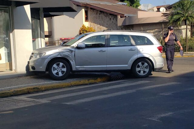 Um veículo de passeio invadiu uma calçada após colidir contra uma caminhonete na tarde desta quarta-feira (03), em Capivari. Ninguém ficou ferido.