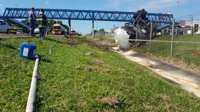 Na manhã desta quarta-feira (24), um caminhão-tanque bitrem carregado de óleo diesel tombou na Rodovia Professor Zeferino Vaz (SP-332), em Campinas (SP). O veículo estava transportando 20 mil litros de combustível.