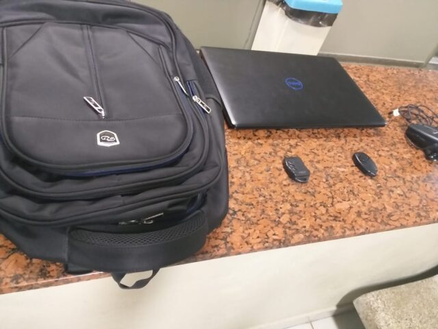 Ainda na residência, vários produtos de furto foram encontrados, como o notebook Dell (furtado no Savegnago), três mochilas, um HD externo, e outro bloqueador.