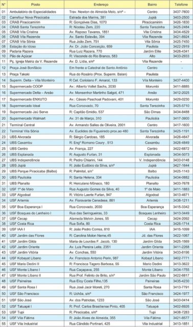 Serão 38 postos de saúde da Atenção Básica e mais 17 postos adicionais que estarão funcionando das 8h às 17h. O objetivo é facilitar a imunização de todas as pessoas que precisam se vacinar, mas não têm tempo disponível de segunda a sexta-feira.
