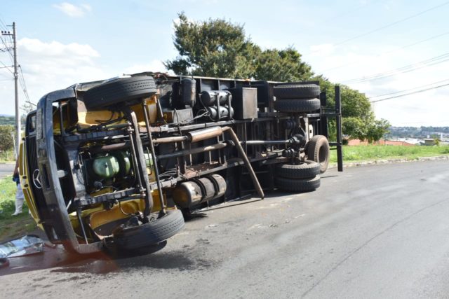 De acordo com informações apuradas pelo Jornal PIRANOT, um caminhão de frigorífico trafegava pela Avenida Luiz Ralph Benatti, quando, ao realizar a rotatória de acesso à Avenida Brasília, tombou na via. Como o caminhão ficou com a porta do motorista virada para baixo, tanto o condutor quanto o passageiro tiveram que estourar o vidro da porta do passageiro para sair.