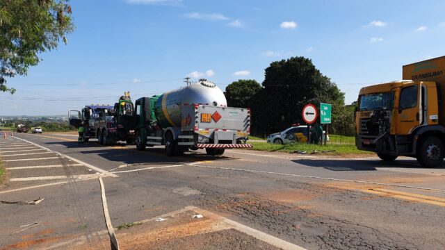 O acidente ocorreu no km 44 da referida rodovia, quando o motorista do caminhão amarelo, placas de Osasco, tentou cruzar a SP-101, momento em que um caminhão com quatro toneladas de GLP líquido acabou atingido. Os bombeiros foram acionados e isolaram a área. Não houve vazamento de gás.