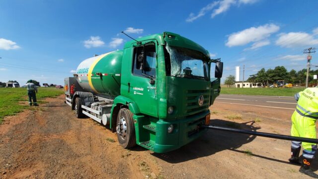 De acordo com o Corpo de Bombeiros, a equipe teve que montar uma linha de combate a incêndio durante a retirada do caminhão de gás, até porque existia risco de explosão.
