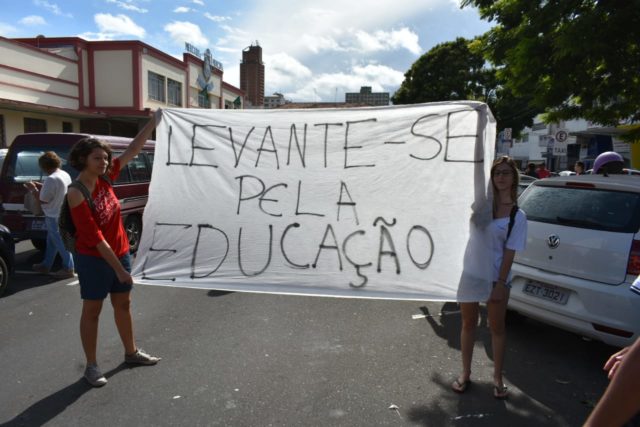 Estudantes dos mais diversos núcleos e instituições de ensino realizaram um protesto na manhã desta quarta-feira (15), por volta das 10 horas, em Piracicaba (SP). O protesto foi organizado após o atual governo promover cortes na educação.