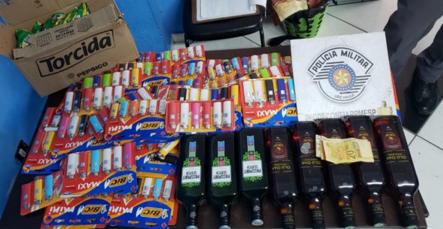 O restante dos produtos estava na casa de um dos criminosos. Foram recuperados pacotes de salgadinhos, cartelas de isqueiros, bebidas alcoólicas e dinheiro.