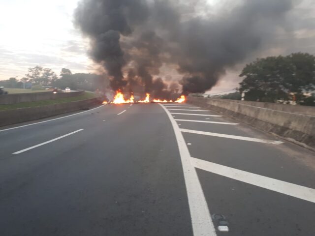 Na Rodovia Anhanguera (SP-330) manifestantes atearam fogo em pneus, o trânsito ficou muito carregado e foi possível ver a fumaça preta de longe.