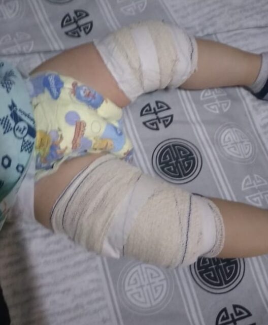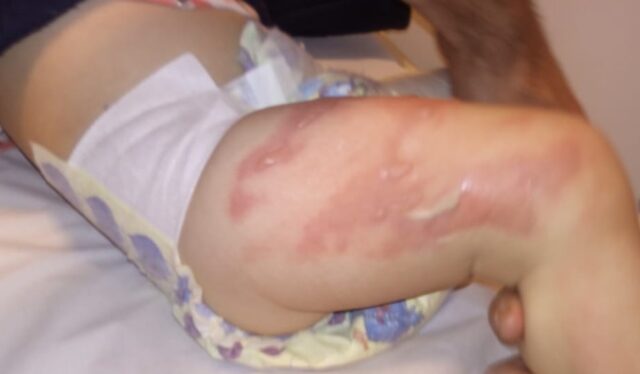 De acordo com o Boletim de Ocorrência (B.O), o Serviço de Atendimento Móvel de Urgência (Samu) foi acionado e levou a vítima ao hospital. O bebê recebeu curativo e ficou com as duas pernas enfaixadas. Houve ferimentos de 1º e 2º graus.