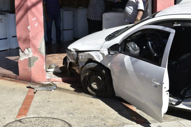 Com o impacto da batida, o veículo Saveiro colidiu contra o muro de uma loja, localizada na esquina da Rua da Morais Barros.