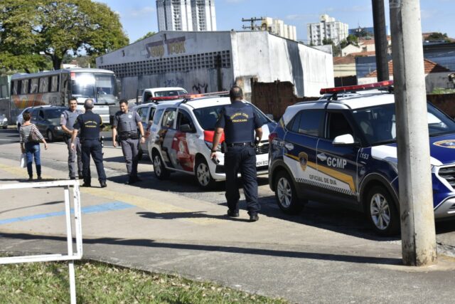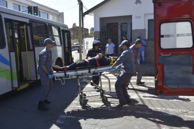 Durante o acompanhamento policial, um dos guardas civis bateu a motocicleta em um ônibus na Rua José Micheletti, Centro da cidade.