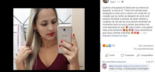 No perfil do criminoso de cometer o crime em uma rede social, há uma postagem de “despedida” para a vítima. No texto, que está acompanhado de uma foto dela, ele diz que não teve a chance de se despedir.