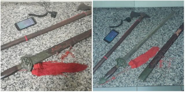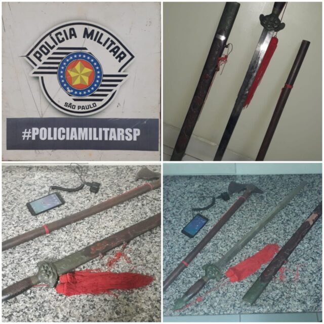 Policiais militares foram até a casa do condenado, por volta das 19h55 desta segunda, e prenderam o indivíduo. No local, foram apreendidos uma espada, um machado e o telefone celular que ele usava para fazer as ameaças.